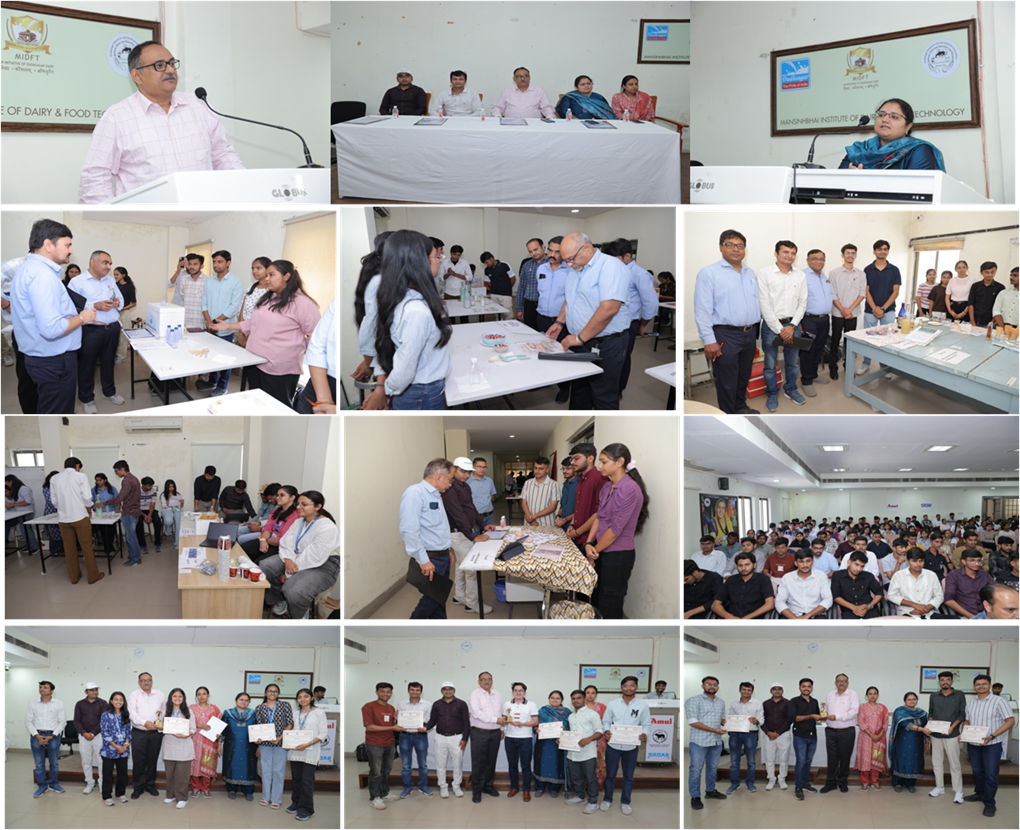 On Friday, 13th March 2026, Innovation cell of Mansinhbhai Institute of Dairy & Food Technology (MIDFT), Mehsana, organized a one-day “Food Product Innovation Contest (FPIC)” under the Students Startup and Innovation Policy (SSIP 2.0). The event was held from 9:30 AM to 2:30 PM and witnessed enthusiastic gathering of more than 200 students, faculty mentors and DudhSagar dairy officials. There was a presence of more than 115 students who participated in the event from various institutes across Gujarat. Participants showcased their innovative food products, reflecting creativity, technical knowledge, and entrepreneurial thinking. The programme was graced by an expert panel of judges who evaluated the products through tasting and scoring based on several criteria, including product concept and novelty, nutritional value and functional attributes, as well as product costing and commercialization potential. All participants were also provided lunch by the host institute.